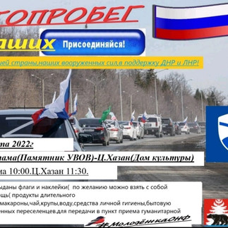 26 марта 2022 года на территории Зиминского района по маршруту "Батама - Центральный Хазан" состоялся автопробег "Zа наших" в поддержку нашей страны, Вооружённых сил РФ, в поддержку ДНР и ЛНР. Студенты ГБПОУ ПУ-39 п. Центральный Хазан из группы СР-220 "Социальная работа" Галиченко Татьяна и Безносова Елена, проживающие в с.Батама, приняли участие в данной акции.Также они - активные участники акции сбора гуманитарной помощи для жителей ЛНР и ДНР.С этих студентов нужно брать пример подрастающему поколению, молодёжи Благодарим Галиченко Татьяну и Безносову Елену за проявленную активную гражданскую позицию и оказанную гуманитарную помощь для жителей ДНР и ЛНР. Студенты поделились впечатлениями: Галиченко Татьяна: "Когда были объявлены данные акции, я и Елена сразу решили, что примем в них участие, тем более, символично то, что мы проживаем в с.Батама и учимся в п.Ц-Хазан. Все члены семьи поддержали нас в решении проявить свою гражданскую позицию и поучаствовать в автопробеге и заодно собрали гуманитарную помощь для беженцев из ДНР и ЛНР. Мы получили незабываемые ощущения, словами это не передать, нужно просто участвовать!" Безносова Елена: Сегодня мы с Галиченко Татьяной учавствовали в автопробеге "Zа своих" #своих не бросаем, в с. Батама, встретились у памятника участникам ВОв, проехали по улицам: Советская, Юбилейная, Молодёжная, Ленина. Все автомобили были с флагами РФ, периодически сигналили, тем самым как бы оповещая всех: вот мы, мы с вами, мы вместе! Останавливались около домов, где проживают участники боевых операций или которые проходили службу в горятих точках, таких как Чечня и Афганистан, чтили минутой молчания погибших советских и российских солдат. Далее мы поехали по маршруту до Ц-Хазана, к нам присоединилась автоколонна из посёлка. Проехав по ул. Мира, мы остановились около дома культуры, чтобы передать гуманитарную помощь, и проехали до участка Трактовый, на этом автопробег закончился. Это было очень здорово, мурашки по коже, эмоции переполняли до слёз, особенно когда подавали сигналы и останавливались около домов, где проживают солдаты, участники, воевавшие в горячих точках".